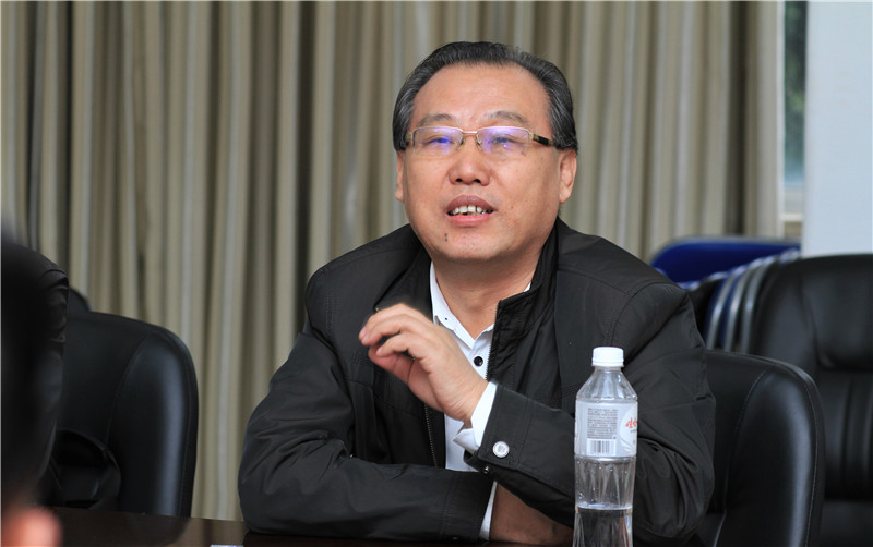 图为昌龙汽车总经理唐有朝介绍企业发展现状