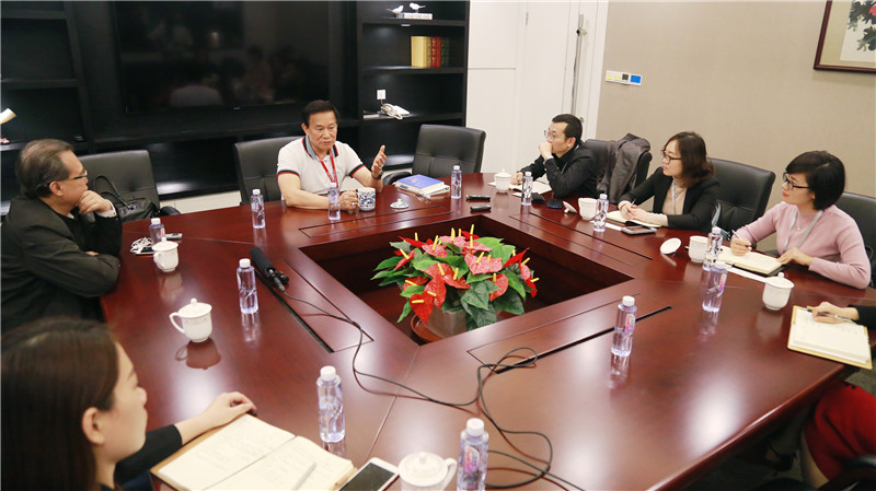 图为工作组与宏泰机电董事长曾琦博士(右三)合影